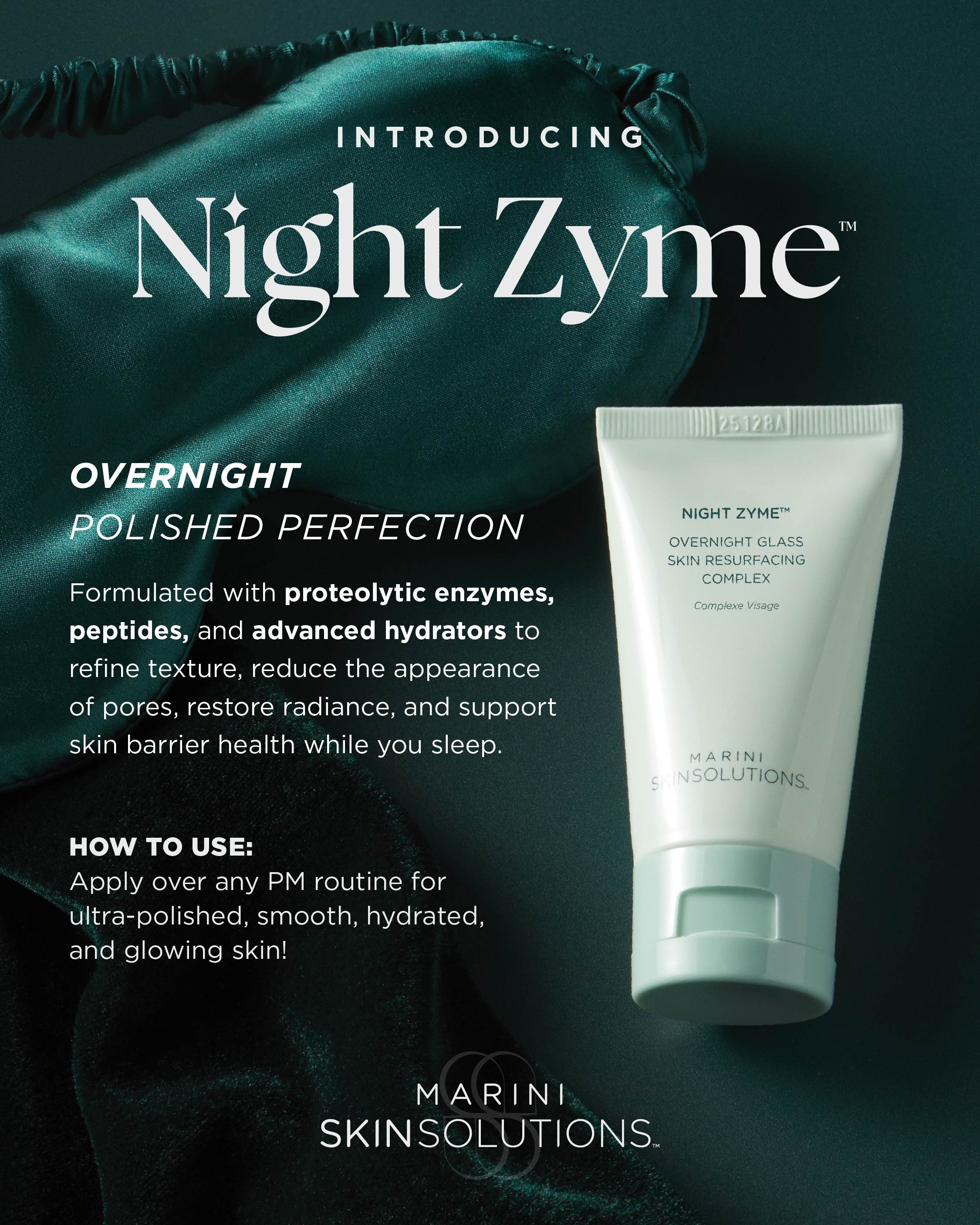 Night Zyme blends proteolytic enzymes, peptides, and hydrators in a gentle overnight complex that digests dead surface cells without irritation. Wake up to smoother, polished, more refined, radiant, and deeply hydrated skin.